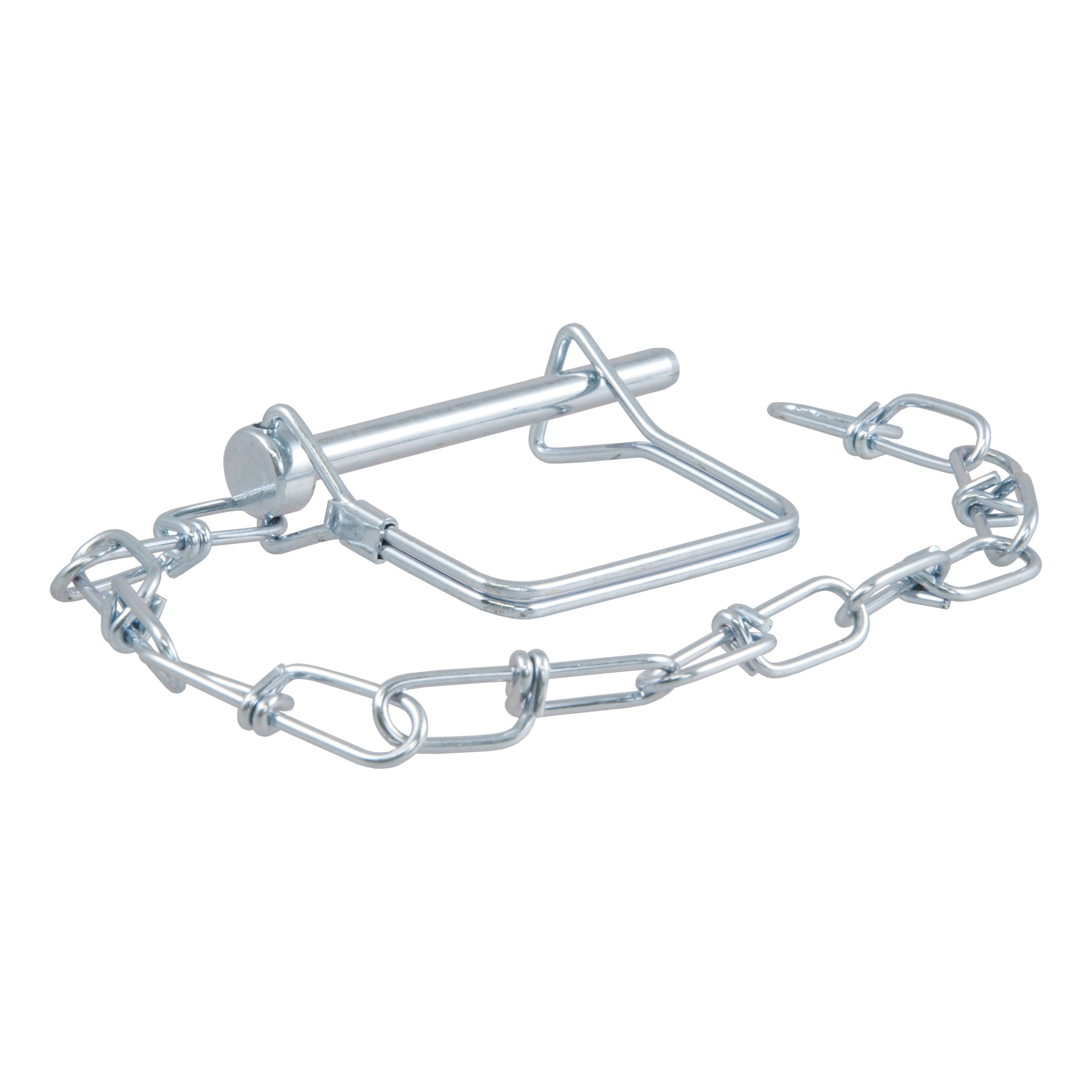 | Description_MKT | CURT safety pins go beyond the simple function of keeping your coupler latch secure. They are constructed from quality materials and have a universal design that allows them be used for a variety of purposes in your towing setup. CURT safety pins are made from solid steel to provide more than enough strength to keep your trailer coupler latched down tight. The zinc plating that we use to finish our safety pins offers excellent protection against rust and corrosion. This is necessary for any trailer because of its frequent exposure to the elements. The user-friendly design of our safety pins allows them to be easily handled while maintaining effective security. This safety pin has a pin diameter of 1/4" and includes a 12" chain attachment to mount onto your trailer coupler and prevent the safety pin from being misplaced. Use CURT safety pins for securing trailer couplers, jacks, caster wheels and more. When you couple your trailer to your vehicle, nuts and bolts just do not cut it. Secure your towing equipment right with a safety pin from CURT. |