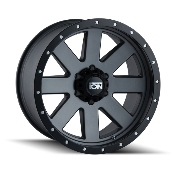 | BULLET POINTS | BOLD BUT TIMELESS 8 SPOKE DESIGN; ENHANCED WITH OUR PATENTED HSL (HIGH STRENGTH LIP) TECHNOLOGY TO ENDURE ALL TERRAIN CONDITIONS; LIP RIVETS WITH "ION" LOGO GIVE A PREMIUM LOOK; INDUSTRY LEADING LOAD RATINGS UP TO 3,640 POUNDS PER WHEEL WITH 40” TIRES; AVAILABLE IN MATTE GUNMETAL WITH BLACK LIP OR FULL MATTE BLACK FINISHES; SIZING AVAILABLE IN 17X8.5, 18X9, 18X10, 20X9 AND 20X10 |