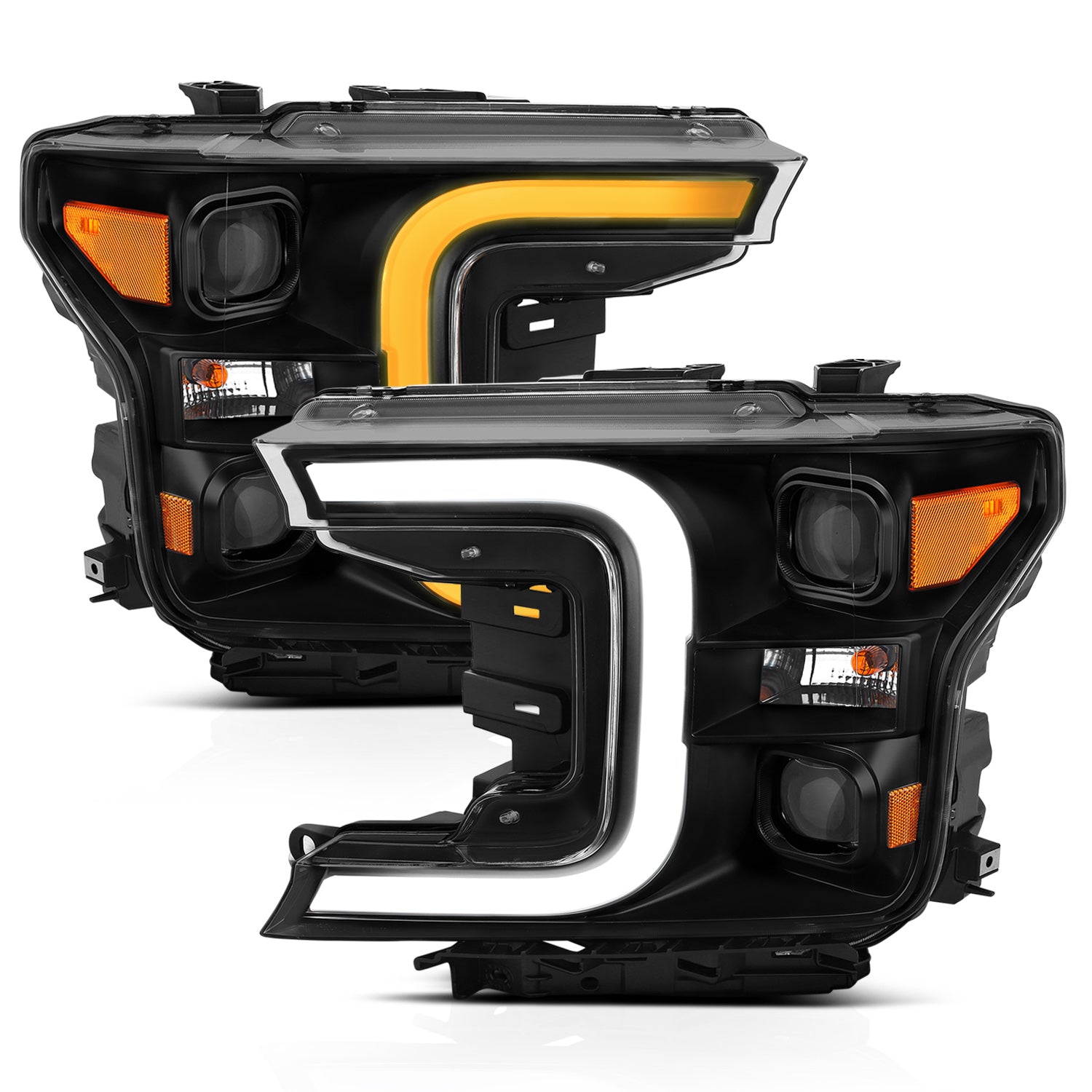 | Description_EXT | Projector Headlight Set; w/Plank Style Switchback; Black w/Amber; LED; |