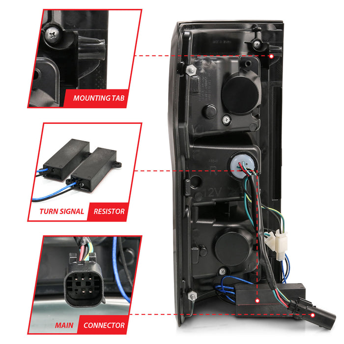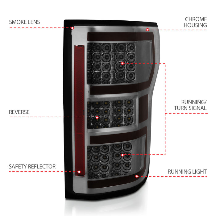 | Description_EXT | Tail Light Assembly; LED; Smoked Lens; Black Housing; Red/White Light Color; Pair; |