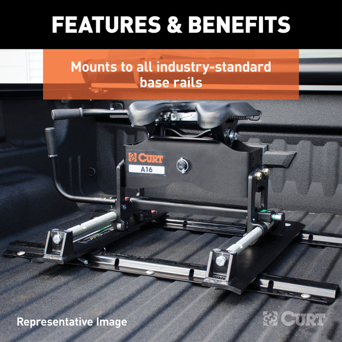 | Description_MKT | A CURT 5th wheel trailer hitch is the ultimate combination of towing power and smooth driving, but a CURT 5th wheel mounted on a 5th wheel slider turns this gentle giant into the ultimate in mobility too. If you have a short-bed truck, it can be difficult towing a large RV trailer, especially one with an extended front overhang. When you are towing a 5th wheel with a 6-foot truck bed, give yourself a little breathing room with a CURT 5th wheel slider. Our 5th wheel sliders mount easily onto a set of 5th wheel rails or a gooseneck adapter already installed in the bed of your pickup truck. CURT 5th wheel sliders feature solid construction and offer a sturdy mounting place for your 5th wheel hitch, ensuring that none of its towing strength is lost. CURT 5th wheel sliders are also true rolling units, meaning they actually roll on wheels that bear the weight of the trailer rather than simply sliding on hollow rods as seen in competitive models. With a thick operating handle, the roller smoothly rolls the 5th wheel head forward and back, locking securely into each position as desired. CURT sliders also provide up to 12" of displacement as well, unlike the more common 10", to give you a wide range of motion and plenty of space to get your RV or other 5th wheel trailer around any turn. This 20K 5th wheel slider comes with a durable carbide powder coat to ensure the best possibly protection against scratching, chipping, rusting and UV damage. It has a towing capacity of 20,000 lbs. and is compatible with select CURT 5th wheel hitches and some competitive 5th wheel hitches. |