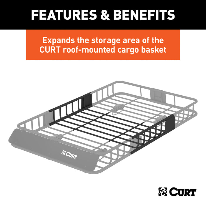 | Description_ASC | Expands the storage area of the CURT roof-mounted cargo basket #18115 |