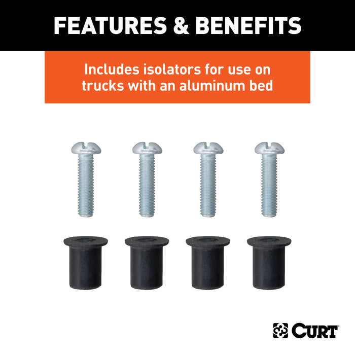 | Description_MKT | There is nothing like the luxury and power that go along with heavy-duty towing. 5th wheel RVs offer a deluxe, home-away-from-home experience unlike any other, while gooseneck trailers possess a strength that far surpasses most other trailer options. As with any trailer, however, 5th wheels and goosenecks must be equipped with the proper lighting and electrical systems, and tend to require even more complex connectors than a standard receiver-type trailer setup. Make things simple with a CURT 5th wheel / gooseneck extension harness. These wiring harnesses are designed to put an extra connector socket in the bed of your pickup truck while still retaining power to the rear connector socket mounted on your bumper. This is done by plugging into the back of the existing original equipment (OEM) harness and routing through the body of the truck to a hole in the truck bed, providing a connector that is ready to accommodate your 5th wheel or gooseneck trailer. This CURT extension harness is designed to work with 7-way RV blade connectors and comes in a length of 10'. It is compatible with certain years of the Ford F-150, F-250 Super Duty and F-350 Super Duty (see application to verify fitment). For trucks with an aluminum body, galvanic corrosion can become a problem when installing vehicle-to-trailer wiring without the appropriate protection. This kit includes isolators that allow you to install the wiring harness extension in an aluminum truck bed without having to worry about ruining the truck's finish. It includes four bolts for secure mounting and four plastic well nuts to isolate the fasteners from all aluminum surfaces. |