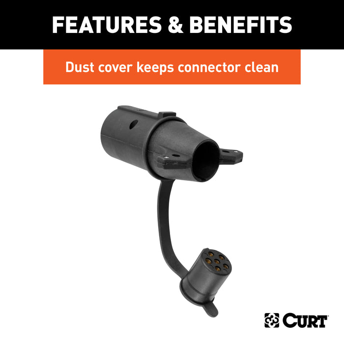 | Description_MKT | There are several different types of connectors used to supply power from a tow vehicles electrical system to a trailers wiring system. Some trailers only need the bare essentials -- running lights, brake lights and turn signals -- while others require a connection for reverse lights, electric brakes and auxiliary power. With connectors ranging from simple to complex, it may be the case that the connection between your vehicle and your trailer is not a perfect match. For example, your truck may be equipped with a 6-way round socket, but your trailer may have a 4-way flat plug. For this very common problem, CURT offers a quick and simple solution in the form of an electrical adapter. An adapter is an electrical device that allows a connection to be made between a mismatched trailer plug and vehicle socket. It easily plugs in your vehicles electrical socket and usually requires no additional wiring. CURT offers an array of adapters to accommodate most types of plugs and sockets, including 4-way flat, 4-way round, 5-way flat, 6-way round, 7-way RV blades and more. This electrical adapter is designed to adapt a 7-way RV blade vehicle socket to fit a 6-way round trailer plug (center pin for brake lights). It features quality plastic construction, requires no splicing and comes with an LED connector tester dust cover. Not only does this dust cover protect the socket from dirt, water and road grime, but it also allows you to test your vehicle-side wiring connector to ensure your electrical systems are functioning properly. All CURT wiring and electrical products come with a one-year limited warranty to give you the assurance you need to tow with confidence. |