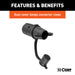| Description_MKT | There are several different types of connectors used to supply power from a tow vehicle's electrical system to a trailer's wiring system. Some trailers only need the bare essentials -- running lights, brake lights and turn signals -- while others require a connection for reverse lights, electric brakes and auxiliary power. With connectors ranging from simple to complex, it may be the case that the connection between your vehicle and your trailer is not a perfect match. For example, your truck may be equipped with a 6-way round socket, but your trailer may have a 4-way flat plug. For this very common problem, CURT offers a quick and simple solution in the form of an electrical adapter. An adapter is an electrical device that allows a connection to be made between a mismatched trailer plug and vehicle socket. It easily plugs in your vehicle's electrical socket and usually requires no additional wiring. CURT offers an array of adapters to accommodate most types of plugs and sockets, including 4-way flat, 4-way round, 5-way flat, 6-way round, 7-way RV blades and more. This electrical adapter is designed to adapt a 7-way RV blade vehicle socket to fit a 6-way round trailer plug (center pin for brake lights). It features quality plastic construction, requires no splicing and comes with an LED connector tester dust cover. Not only does this dust cover protect the socket from dirt, water and road grime, but it also allows you to test your vehicle-side wiring connector to ensure your electrical systems are functioning properly. All CURT wiring and electrical products come with a one-year limited warranty to give you the assurance you need to tow with confidence. |