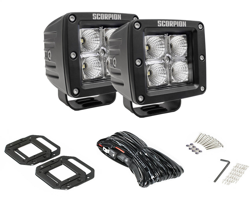 | Description_MKT | Scorpion LED Lights have been designed and tested to withstand harsh and ever-changing environments. Scorpion LED Lights are more durable, last longer and are more affordable than the competition. Our lights have a built-in Temperature Control System (TCS) that allows the light to operate at max power and lumens. The TCS monitors the internal temperature and adjusts the power output to allow for max lumen intensity while protecting the light from overheating. What's more, is that Scorpion LED lights come standard with a surface mount bezel and a flush mount bracket. Now you have the option to mount the light with the surface mount onto roll bars, light bars, and roof racks or flush mounted into your bumper, roof rack, or other custom installations. Having multiple mounting options within the same package allows you to find the perfect location for that needed extra light no matter if it's on your Jeep, UTV, Truck, or any other vehicle. We didn't stop there, to make install even more convenient and pain-free, we include a full wiring harness and switch. |