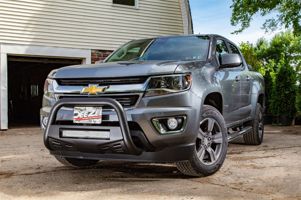 | Description_MKT | Dee Zee UltraBlack Steel Bull Bar. 3" diameter mandrel-bent steel tubing, creates strong but subtle appearance. Black powder coated steel provides strength and durability. Comes with removable skid plate for additional protection if needed. Cutout for auxiliary light bar (not included). Quick, no-drill installation. |