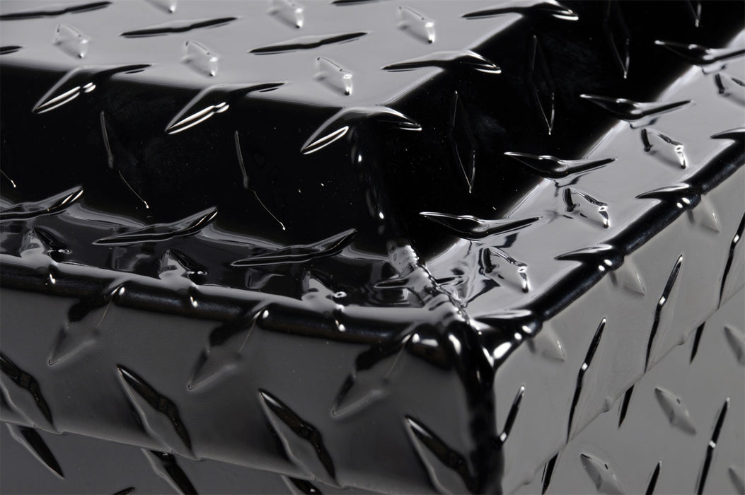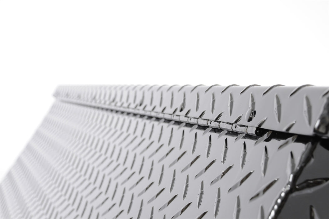 | Description_MKT | Dee Zee Tool Box - Blue Label (Contractor Grade) Side Mount. Constructed of heavy gauge Brite-Tread aluminum. Black-Tread powder coat, provides a gloss black finish while it protects and prevents oxidation. Large push button with self-adjusting latches. Hidden hinge, gas shocks, Alumaguard strengthening channel, and adjustable strikers on a hat style lid. Works great by self or maximize your storage options with a matching crossover. |