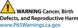 | WARNING CA Proposition 65 Message | WARNING Cancer; Birth Defects; and Reproductive Harm www.P65Warnings.ca.gov |