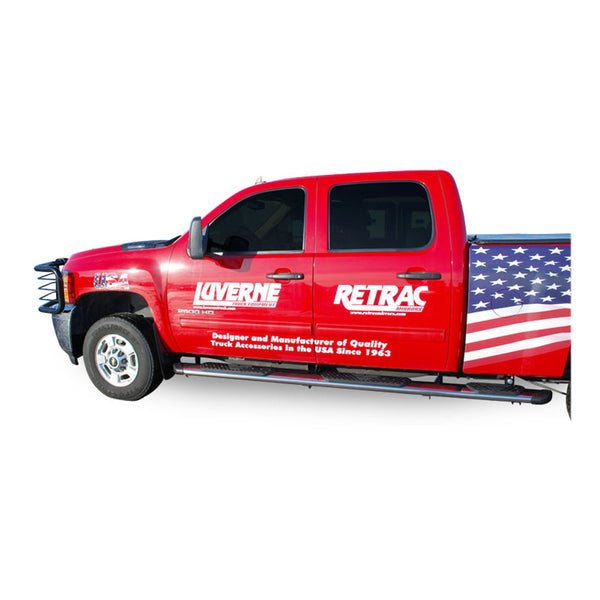 | Description_SLA | Not everyone understands the status that comes with owning a full-size truck or SUV, but for those who do, LUVERNE Regal 7 oval side steps are the side accessory of choice. They are the largest oval nerf bars on the market, featuring a patented design, non-skid step pads and a sleek nerf bar styling. Built on the idea that a deluxe ride needs a deluxe entrance, these 7" ovals have a width comparable to some of the largest running boards available. This, combined with the classic styling of popular nerf bars, allows Regal 7 oval side steps to easily live up to their name. Each is set with full-width step pads that offer a non-skid surface for ultimate comfort and safety. They are also capped on each end with contoured end caps, giving them a professional look and added protection against small rocks and road debris. This package includes the side steps only and requires mounting brackets for a complete installation (sold separately). This set of side steps fits a variety of pickup trucks from Chevrolet, Ford, GMC and Ram (see application info for exact fitment). |