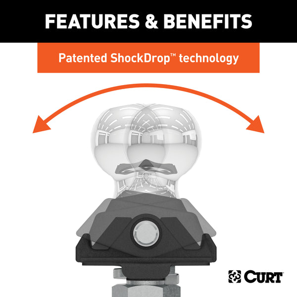| Description_MKT | The CURT RockerBall trailer ball is a cushion hitch ball that dynamically absorbs jerking and jarring from your trailer at the coupling point. Just bolt it onto your existing trailer hitch ball mount to enjoy increased comfort, enhanced control and extended longevity of your vehicles systems. The RockerBall tow ball is engineered with ShockDrop technology: a cushion isolator that reduces noise, vibrations and chucking at the coupling point. This produces quieter towing, increased driver control over the trailer and reduced strain on the vehicles brakes, towing system and suspension, compared to a conventional metal-on-metal towing connection. The RockerBall fits onto a variety of standard ball mounts -- virtually any ball mount with a 2-1/2-inch wide trailer ball tongue and 1-inch diameter ball hole. RockerBall is also virtually maintenance-free. Unlike other cushion hitch and torsion hitch options, it has no airbags or bearings to service. Just apply grease to the zerk fitting as needed for continuous lubrication and smooth towing. The RockerBall trailer ball is constructed from forged steel for exceptional strength, and it comes with a powder coat finish and chrome plating for dependable corrosion resistance. |
