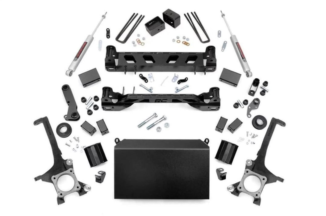 | Description_MKT | You'll never look at a Tundra the same way after installing Rough Country's 6-inch Toyota Tundra kit. This all-inclusive kit is a total transformation for your truck, with durable lifted knuckles, protective skid plate, and all the brackets and hardware needed to set your truck to a factory-like geometry while providing additional ground clearance. The beefy front crossmember features a high-clearance design to help traverse off-road obstacles with no hang-ups.Run larger wheels and tires while giving your truck a one-of-a-kind look and exceptional off-road performance. This kit affords your truck an aggressive appearance and a higher profile that is sure to demand attention. This kit includes Rough Country's Nitrogen-charged N3 Shocks for the ultimate balance in highway ride quality and off-road vibration dampening. Includes Rough Country's Lifetime Replacement Guarantee. |