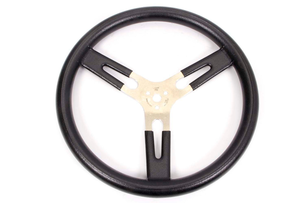 Steering Wheel - 17 in Diameter - Flat - 3-Spoke - Black Rubberized Grip - Aluminum - Natural - Each