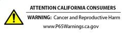 | WARNING CA Proposition 65 Message | Warning: This product contains chemicals known to the State of California to cause cancer and birth defects or other reproductive harm. For more information: www.P65Warnings.ca.gov |