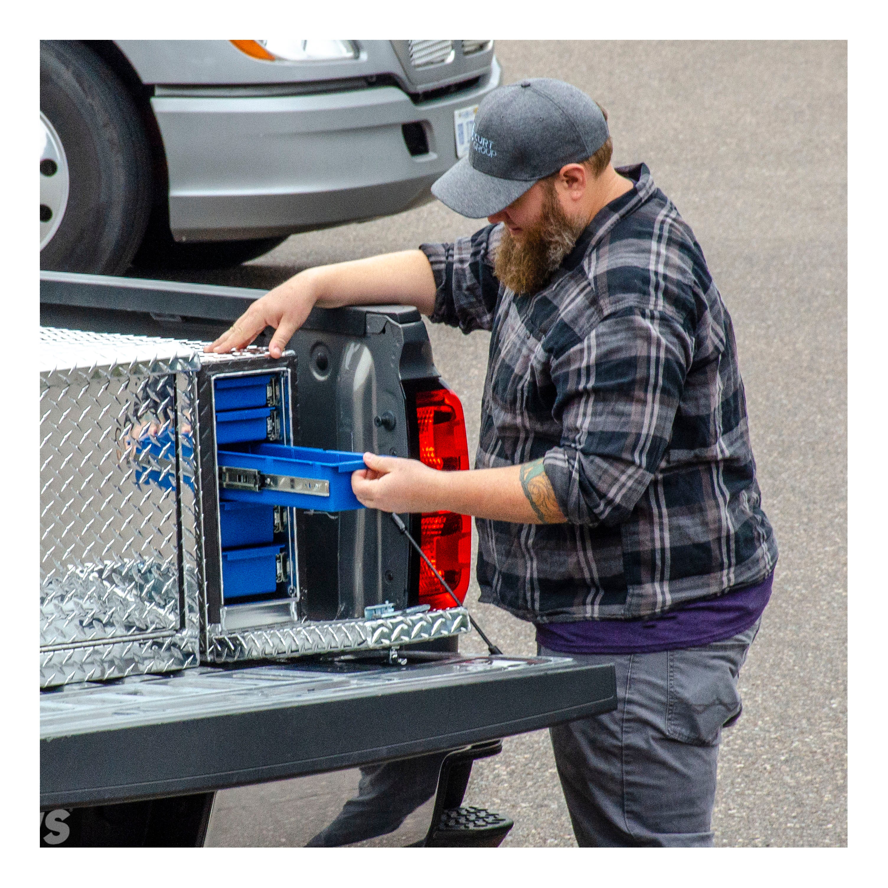 | Description_MKT | UWS drawer truck tool boxes provide unbeatable storage and security for your small tools and equipment in your truck, van, trailer or even on a workbench. Each box features five sliding drawers, a corrosion-resistant aluminum construction and a highly secure stainless steel locking system - all to keep your equipment and valuables safe and easily accessible whenever needed. The tool box itself is constructed from extra-thick aluminum for increased structural strength. The tub is welded together into a single piece for weather resistance, and the door features a stainless steel, key-operated T-handle. Stainless steel construction supplies the lock with long-lasting corrosion resistance, and the door also has a MicroSeal gasket, blocking moisture, dust and insects from getting inside and damaging your valuables. The drawers of this tool box are constructed from commercial-grade, precision-injected plastic for strength and smooth operation. They slide on stainless steel ball bearings and sliders for excellent corrosion resistance. UWS drawer tool boxes are available in multiple sizes to accommodate any storage need. Like all UWS tool boxes, this product is proudly assembled right here in the USA for style and long-lasting dependability. This product is heavily packaged for parcel shipping. |